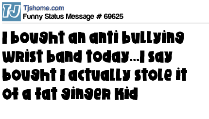 X is I bought an anti bullying wrist band today...I say bought I actually stole it of a fat ginger kid