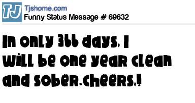 X In only 366 days, I will be one year clean and sober.cheers,!