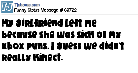 X My girlfriend left me because she was sick of my xbox puns. I guess we didn't really kinect.