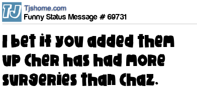 X is I bet if you added them up Cher has had more surgeries than Chaz.