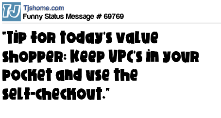 X says "Tip for today's value shopper: Keep UPC's in your pocket and use the self-checkout."