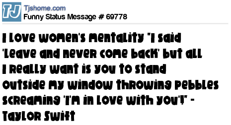 X is I love women's mentality "I said 'leave and never come back' but all I really want is you to stand outside my window throwing pebbles screaming 'I'm in love with you'!" - Taylor Swift