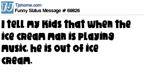 - # 33680 My parents used to tell me that if the ice cream man was playing his music it meant he had none left.....how cruel!!! and nmore-so why would he still drive into my street? just to taunt me!!??? I was an idiot child!!