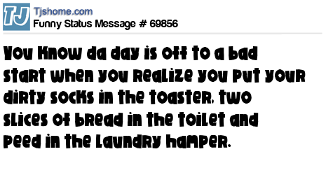 X You know da day is off to a bad start when you realize you put your dirty socks in the toaster, two slices of bread in the toilet and peed in the laundry hamper.