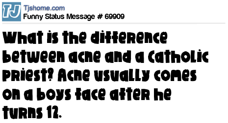 - # 54579 what is the difference between acne and a catholic priest? Acne usually comes on a boys face after he turns 12