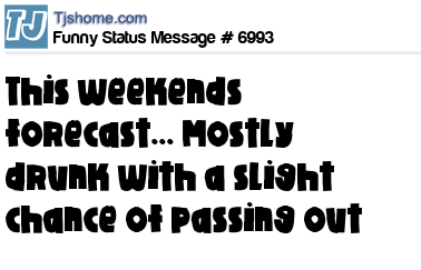 - # 41245 This weekends forecast; Mostly drunk, Scattered shots, with a slight chance of falling down.!!