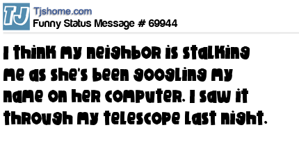- # 209571 I think my neighbor is stalking me. She's been googling my name on her computer. I saw it through my telescope last night.