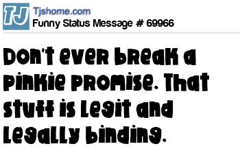 X says Don't ever break a pinkie promise. That stuff is legit and legally binding.