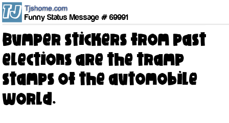 X says Bumper stickers from past elections are the tramp stamps of the automobile world.