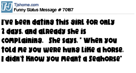 X is I've been dating this girl for only 2 days, and already she is complaining. She says, " When you told me you were hung like a horse, I didn't know you meant a Seahorse"