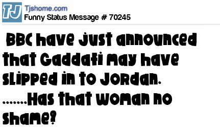 X BBC have just announced that Gaddafi may have slipped in to Jordan. .......Has that woman no shame?
