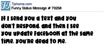 X If I send you a text and you don't respond, and then I see you update Facebook at the same time, you're dead to me.