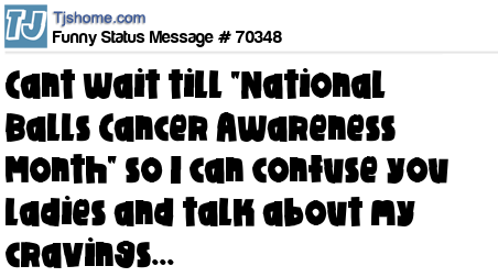 X says Cant wait till "National Balls Cancer Awareness Month" so I can confuse you ladies and talk about my cravings...