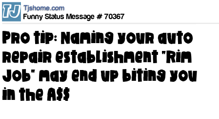 X Pro tip: Naming your auto repair establishment "Rim Job" may end up biting you in the A$$