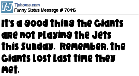 X It's a good thing the Giants are not playing the Jets this Sunday. Remember, the Giants lost last time they met.