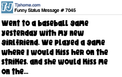 X went to a baseball game yesterday with my new girlfriend. We played a game where I would kiss her on the strikes, and she would kiss me on the...