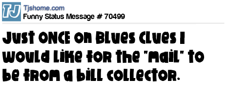 X Just ONCE on Blues Clues I would like for the "mail" to be from a bill collector.