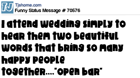 - # 26974 I attend weddings purely to be fortunate enough to hear those two little words that always bring tears to my eyes - "open bar"