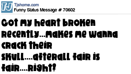 X is Got my heart broken recently...makes me wanna crack their skull....afterall fair is fair....right?
