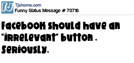 - # 57031 Facebook doesn't need a "dislike" button what it needs is a " noody effin cares" or get over yourself your really not that special button"