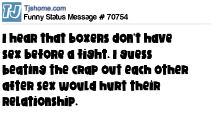 - # 32949 Boxers don't have sex before a fight, do you know why that is??? They don't fancy each other