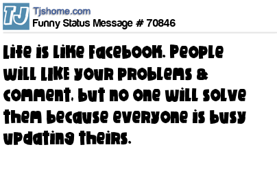 - # 51224 Life is like Facebook. People will like your problems & comment, but no one will solve them because everyone is busy updating theirs