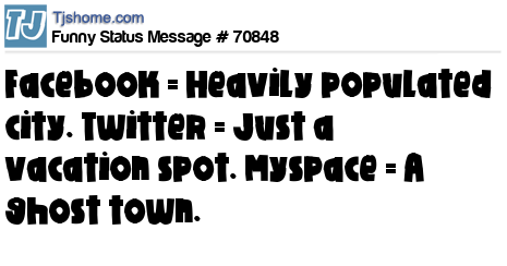 - # 91878 Facebook is a major city, Twitter is a vacation spot, and My space is a ghost town.