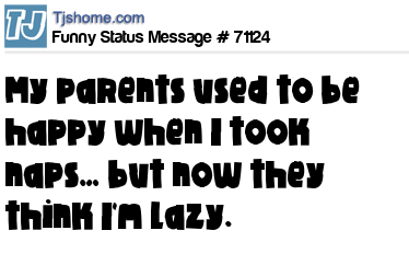 - # 96646 My parents used to be happy when I took naps but now they think I'm lazy.