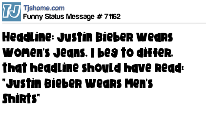 X says Headline: Justin Bieber Wears Women's Jeans. I beg to differ, that headline should have read: "Justin Bieber Wears Men's Shirts"