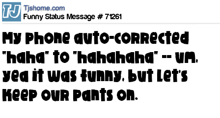 X My phone auto-corrected "haha" to "hahahaha" -- um, yea it was funny, but let's keep our pants on.