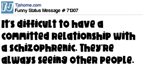 X is It's difficult to have a committed relationship with a schizophrenic. They're always seeing other people.
