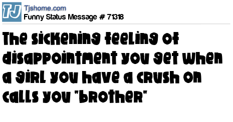 X says The sickening feeling of disappointment you get when a girl you have a crush on calls you "brother"