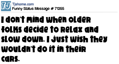 X I don't mind when older folks decide to relax and slow down. I just wish they wouldn't do it in their cars.