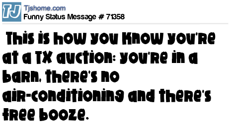 X This is how you know you're at a TX auction: you're in a barn, there's no air-conditioning and there's free booze.