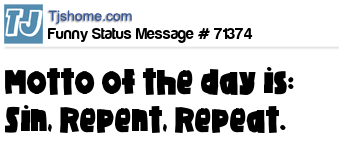 X says motto of the day is: Sin, Repent, Repeat.