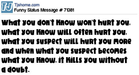 X says What you don't know won't hurt you, what you know will often hurt you, what you suspect will hurt you more and when what you suspect becomes what you know, it kills you without a doubt.