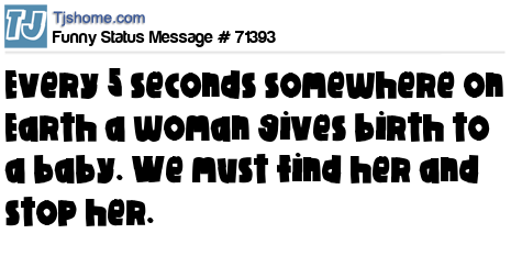 - # 20151 Somewhere on earth a woman give's birth to a child every 10 sec! we must find her & stop her.