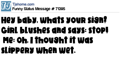 X is Hey baby, whats your sign? Girl blushes and says: stop!  Me: Oh, I thought it was slippery when wet.