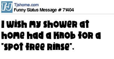 X says i wish my shower at home had a knob for a "spot free rinse".