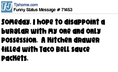 X Someday, I hope to disappoint a burglar with my one and only possession. A kitchen drawer filled with Taco Bell sauce packets.