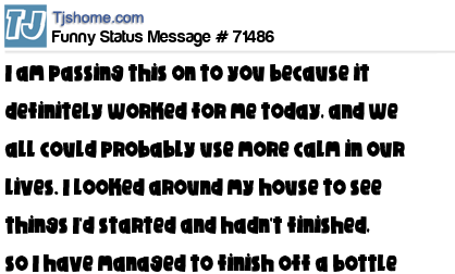 X is I am passing this on to you because it definitely worked for me today, and we all could probably use more calm in our lives. I looked around my house to see things I'd started and hadn't finished, so I have managed to finish off a bottle of Merlot, a bott
