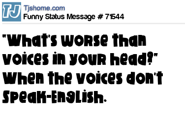X says "What's worse than voices in your head?" When the voices don't Speak-English.
