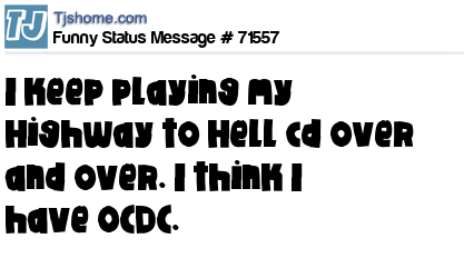 X I keep playing my Highway to Hell cd over and over. I think I have OCDC.