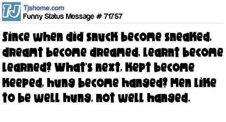 X Since when did snuck become sneaked, dreamt become dreamed, learnt become learned? What's next, kept become keeped, hung become hanged? Men like to be well hung, not well hanged.