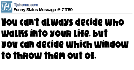 X says You can't always decide who walks into your life, but you can decide which window to throw them out of.