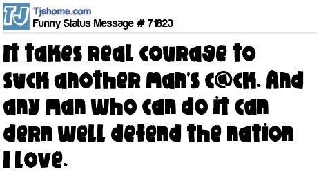X is It takes real courage to suck another man's c@ck. And any man who can do it can dern well defend the nation I love.