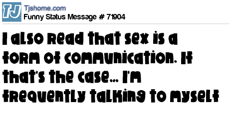 X says I also read that sex is a form of communication. If that's the case… I'm frequently talking to myself