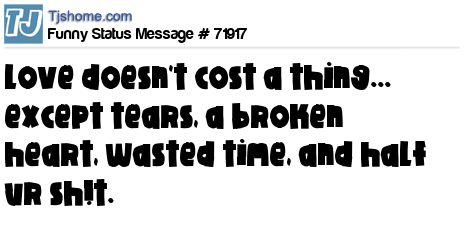 - # 71915 Love doesn't cost a thing; except tears, a broken heart, wasted years and half your stuff.