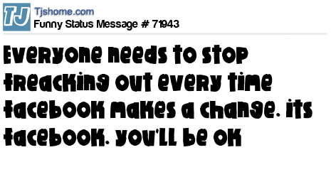 X says everyone needs to stop freacking out every time facebook makes a change. its facebook. you'll be ok