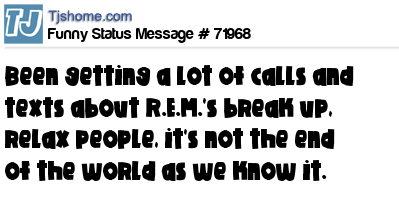 X has been getting a lot of calls and texts about R.E.M.'s break up, relax people, it's not the end of the world as we know it.